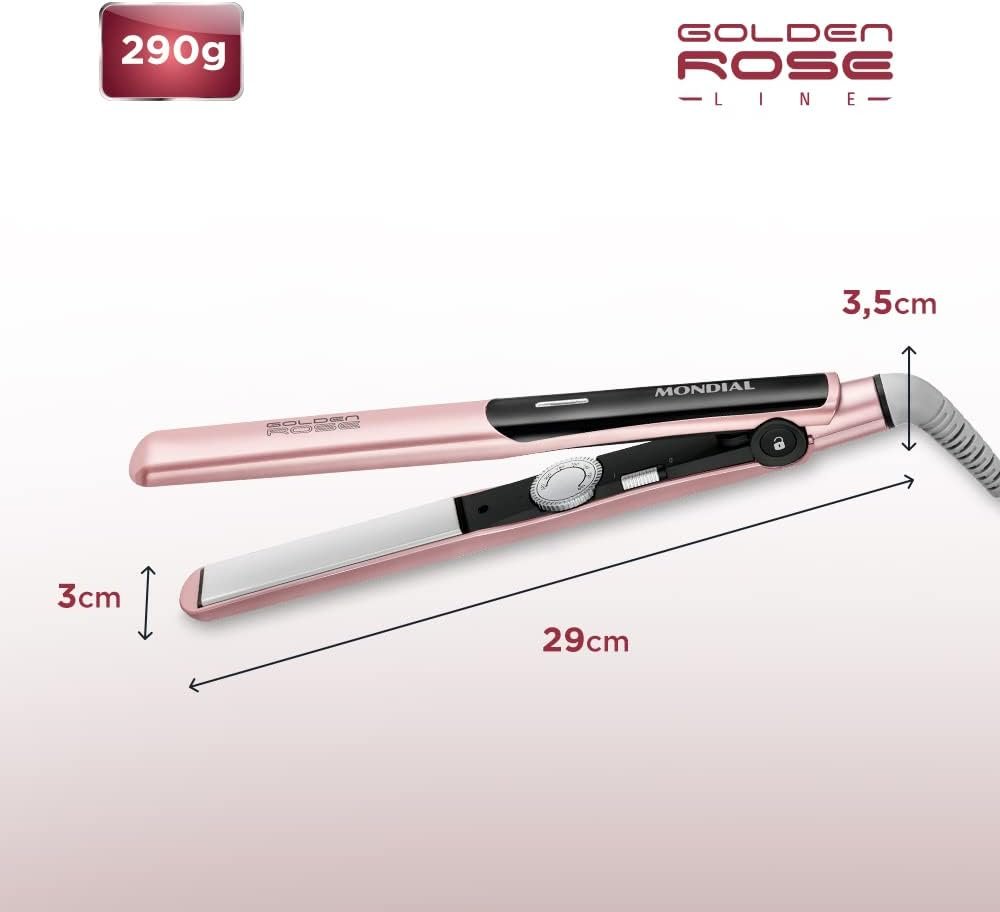 Cabelos perfeitamente lisos e sem marcas! A Prancha Alisadora Golden Rose P-20 possui chapas flutuantes, que se adequam às mechas e alisam uniformemente. O revestimento cerâmico com tecnologia Tourmaline Íon aquece por igual e emite íons, que dão mais brilho e reduzem o frizz. Saiba mais sobre a Prancha da Mondial: